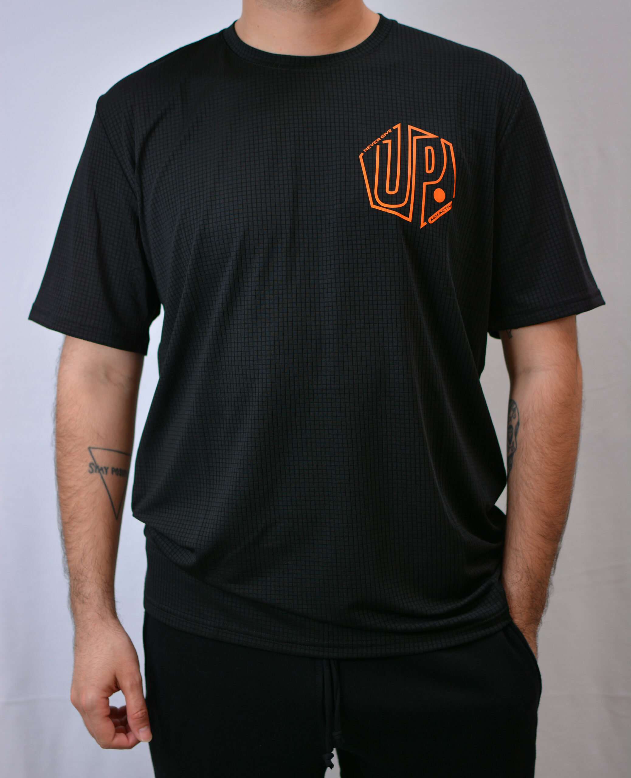 Remera deportiva con cuello redondo en dry grilla.